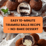 These 10 Minute Tiramisu Balls are a quick and delicious twist on the classic Italian dessert. Combining the smooth richness of mascarpone with the bold flavors of espresso and coffee liqueur, these bite-sized treats are perfect for a fast and indulgent dessert. Easy to make and requiring no baking, they’re an elegant yet effortless sweet bite.