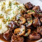 - Season and Serve: Taste the gravy and season with additional salt and pepper as needed. Serve the beef tenderloin tips hot, smothered in the rich mushroom gravy.