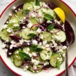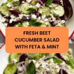 A refreshing and vibrant Beet Cucumber Salad featuring tender cooked beets, crisp cucumber slices, tangy feta cheese, and fresh mint, all dressed in a zesty lemon-honey vinaigrette. This simple no-cook salad is perfect as a light side dish or healthy snack.