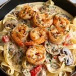 - Combine Everything: Return cooked shrimp, sautéed mushrooms, roasted red bell peppers, and capers to the pan. Stir well and heat through. Season with salt and pepper to taste if needed.