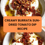A creamy and flavorful Burrata Sun-Dried Tomato Dip that combines fresh burrata cheese with a tangy blend of sun-dried tomatoes, garlic, oregano, and balsamic vinegar, topped with toasted pine nuts and served with crusty bread or crackers. Perfect as an elegant appetizer or party dip.
