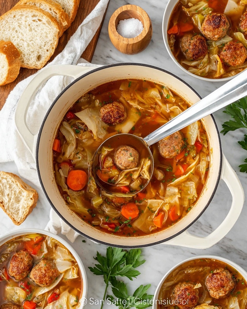 A comforting and hearty cabbage meatball soup that combines tender vegetables, savory meatballs, and flavorful broth. This easy-to-make soup is perfect for a cozy meal, featuring a balance of textures and spices that will warm you up on any day.