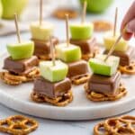 Keywords: Caramel Apple Pretzel Bites, sweet and salty snacks, Rolo pretzels, apple snacks, toffee pretzel bites, easy party snacks