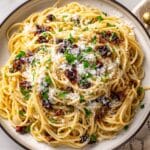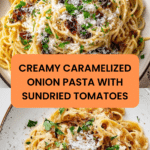 This creamy caramelized onion pasta combines deeply caramelized onions with sundried tomatoes, a touch of chili crisp for heat, and a rich parmesan cream sauce, tossed with al dente linguine or buccatini. It’s a comforting and flavorful vegetarian pasta dish perfect for a cozy meal.