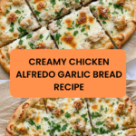 This Chicken Alfredo Garlic Bread is a deliciously indulgent fusion of creamy Alfredo sauce, tender seasoned chicken, and crispy golden garlic bread topped with melted mozzarella and Parmesan cheese. Perfect as a comforting appetizer or a satisfying meal, it combines rich flavors and a crispy texture that everyone loves.