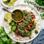 Chimichurri Chicken is a vibrant and flavorful dish featuring tender baked chicken thighs topped with a zesty, herb-packed chimichurri sauce made with fresh parsley, cilantro, garlic, and lime. Paired with cilantro-lime rice, this meal balances savory and tangy notes for a deliciously fresh dinner that’s easy to prepare and perfect for any occasion.