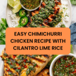 Keywords: chimichurri chicken, baked chicken thighs, chimichurri sauce, cilantro-lime rice, Argentinian chicken recipe, easy chicken dinner, herb sauce chicken