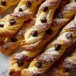 Keywords: Chocolate chip twists, cookie dough twists, puff pastry dessert, crescent roll cookies, easy baked treats, chocolate chip snacks