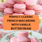Classic French Macarons with a smooth and creamy vanilla buttercream filling, featuring delicate almond meringue shells baked to perfection. This recipe delivers the iconic crisp exterior with chewy interior texture, complemented by a rich, flavorful buttercream that’s ideal for special occasions or indulgent treats.