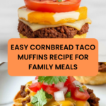 These Cornbread Taco Muffins combine the comforting texture of cornbread with the bold, savory flavors of classic taco filling. Perfect as a fun appetizer, snack, or meal, they offer a delightful blend of slightly sweet cornmeal batter layered with seasoned ground meat and melted cheese, baked to golden perfection and served with your favorite taco toppings.
