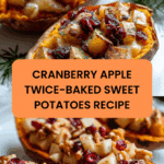 Cranberry Apple Twice-Baked Sweet Potatoes combine the natural sweetness of baked sweet potatoes with tart fresh cranberries and juicy apples. Infused with warm cinnamon and enriched with butter, brown sugar, and a pinch of salt, this comforting dish is perfect as a side for fall meals or festive occasions. The sweet potatoes are baked, scooped, mixed with fruit and spices, then baked again for a creamy, flavorful treat with a slightly caramelized top.