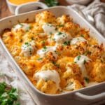 Keywords: Buffalo chicken casserole, cauliflower casserole, creamy buffalo chicken, low carb casserole, baked buffalo chicken
