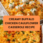 This Creamy Buffalo Chicken Cauliflower Casserole is a flavorful and satisfying dish that combines tender cauliflower with spicy buffalo chicken and cheesy goodness. It’s a perfect meal for those who love a bit of heat and creamy texture without the carbs. Easy to make and packed with bold flavors, it’s sure to become a family favorite.