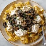Keywords: creamy mushroom pasta, burrata pasta, italian pasta recipe, pappardelle with mushrooms, stovetop pasta sauce, comfort food, mushroom cream sauce