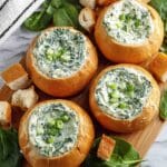 PrintCreamy Spinach Dip with Water Chestnuts in a Sourdough Bread Bowl Recipe