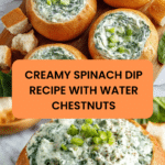 This creamy spinach dip is a classic crowd-pleaser, perfect for parties or casual get-togethers. Loaded with tender spinach, crunchy water chestnuts, and tangy sour cream, it pairs beautifully with fresh bread or crackers.