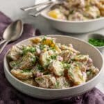 This Crispy Smashed Potato Salad combines tender boiled baby potatoes with a crispy oven-roasted texture, tossed in a tangy vegan yogurt sauce flavored with fresh herbs, shallots, and Dijon mustard. It’s a satisfying vegan and gluten-free side dish perfect for gatherings or a flavorful weeknight meal.