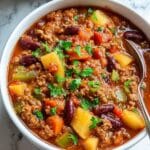 Crock Pot Shipwreck Stew is a hearty and comforting slow-cooked dish featuring tender ground beef, potatoes, carrots, kidney beans, and rich tomato-based broth, flavored with herbs and spices. Perfect for a cozy meal that develops deeper flavors over several hours of slow cooking.