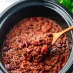Keywords: Crockpot chili, slow cooker chili, ground beef chili, Italian sausage chili, easy chili recipe, comfort food