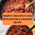 This Crockpot Chili recipe combines hearty ground beef, Italian sausage, smoky bacon, and a variety of vegetables and spices, slow-cooked to perfection for a rich, flavorful chili. Perfect for a comforting meal, it features a blend of chili beans, diced tomatoes, and a complex spice mix, simmered low and slow in a crockpot for deep, savory flavors.