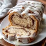- Serve: Slice the bread and serve. Enjoy the warm cinnamon flavors paired with the sweet vanilla glaze.
