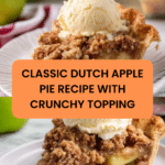 This classic Dutch Apple Pie features a tender, flaky crust filled with tart Granny Smith apples tossed in a fragrant blend of cinnamon, nutmeg, and sugars, topped with a buttery, crumbly streusel topping. Baked to golden perfection, this comforting dessert is perfect served warm with a scoop of vanilla ice cream or a dollop of whipped cream.