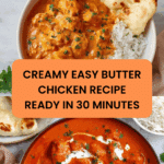 This Easy Butter Chicken recipe combines tender chicken breast chunks simmered in a rich, aromatic tomato and coconut milk sauce infused with warm Indian spices like garam masala, coriander, and curry powder. Ready in about 35 minutes, it’s a flavorful and comforting dish perfect for serving over rice or with naan.
