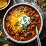 - Season and Serve: Taste the chili and adjust the salt if necessary. Serve hot with your choice of toppings such as sour cream, shredded cheese, chopped green onions, or corn chips for added texture and flavor.