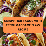 Delicious and vibrant Fish Tacos with a crunchy cabbage slaw, featuring perfectly seasoned white fish fillets cooked in a skillet or baked for convenience, and topped with a tangy, creamy slaw dressing. This easy-to-make recipe combines fresh flavors and textures for a satisfying meal that’s perfect for a quick weeknight dinner or entertaining guests.