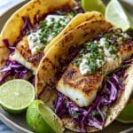 Delicious and vibrant Fish Tacos with a crunchy cabbage slaw, featuring perfectly seasoned white fish fillets cooked in a skillet or baked for convenience, and topped with a tangy, creamy slaw dressing. This easy-to-make recipe combines fresh flavors and textures for a satisfying meal that’s perfect for a quick weeknight dinner or entertaining guests.