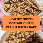 This Frozen Cottage Cheese Bark is a delicious and healthy snack that combines creamy cottage cheese with the rich flavors of peanut butter, honey, dark chocolate, and roasted peanuts. It’s easy to prepare, requires no baking, and is perfect for a refreshing frozen treat or protein-packed dessert.