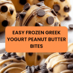 These Frozen Greek Yogurt Peanut Butter Bites with Chocolate Chips are a delicious and healthy snack. Combining creamy Greek yogurt, rich peanut butter, and sweet honey with mini chocolate chips, these bite-sized treats are easy to make and perfect for a quick energy boost or a guilt-free dessert. Freezing the mixture sets the bites solid, creating a refreshing and satisfying snack.