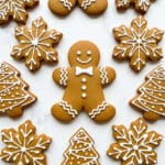 Classic gingerbread cookies with warm spices and sweet molasses, perfect for holiday baking. These soft and flavorful cookies are rolled out, cut into festive shapes, baked to perfection, and decorated with a smooth royal icing made from meringue powder and powdered sugar.