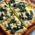 This Greek Roasted Garlic Spinach White Pizza is a flavorful twist on traditional pizza, featuring a creamy roasted garlic and ricotta base topped with fresh spinach and a blend of Mediterranean cheeses. Perfect for a quick weeknight dinner or a cozy weekend treat, it delivers rich, vibrant flavors in every bite.