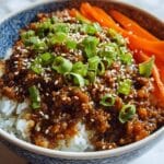This Healthy Ground Turkey Teriyaki Rice Bowl is a delicious and nutritious meal featuring lean ground turkey cooked in a flavorful homemade teriyaki sauce. Served over brown rice and topped with fresh vegetables like shredded carrots, bell peppers, and green onions, this dish offers a perfect balance of protein, veggies, and whole grains with a touch of sesame and ginger for added depth. It’s quick to prepare, easy to customize, and great for a healthy weeknight dinner.