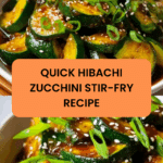Keywords: Hibachi zucchini, Japanese side dish, seared zucchini, easy zucchini recipe, skillet zucchini, vegetable side, garlic soy zucchini