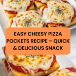 These Homemade Easy Cheesy Pizza Pockets are a fun and delicious snack or meal option featuring gooey mozzarella, tangy marinara, and your favorite pizza toppings all wrapped in flaky or soft dough. Perfectly golden and crispy, they’re ideal for parties, lunchboxes, or anytime craving pizza in a portable form.