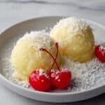 Husband-Catcher Coconut Cake is a moist and creamy coconut-flavored cake made with a blend of milk, coconut milk, condensed milk, and eggs. The cake is baked to perfection and topped with a luscious coconut glaze enriched with grated coconut, making it a delightful dessert that’s both rich and refreshing.