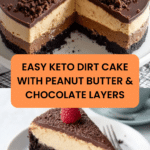 A rich and creamy Keto Dirt Cake featuring a chocolate almond flour crust, a luscious peanut butter layer, and a smooth chocolate pudding topping. This low-carb dessert is perfect for keto enthusiasts craving a decadent treat without the sugar.