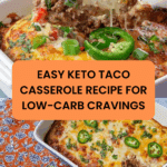 This Keto Taco Casserole is a flavorful, low-carb twist on a classic favorite. Packed with seasoned ground beef, melty cheese, and keto-friendly tortillas, it’s perfect for a comforting dinner that fits your keto lifestyle.