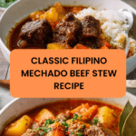 Mechado is a hearty Filipino beef stew known for its rich tomato-based sauce and tender chunks of beef. This comforting dish combines savory, tangy, and slightly sweet flavors, perfect for family meals or special occasions.