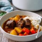 Keywords: Mechado, Filipino Beef Stew, beef stew with potatoes and carrots, Filipino cuisine, hearty stew