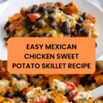 Keywords: Mexican chicken skillet, sweet potato and black bean skillet, one-pan Mexican dinner, quick chicken skillet, spicy chicken recipe