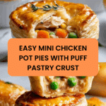 These Mini Chicken Pot Pies are a comforting and delicious meal, perfect for individual servings. With a flaky puff pastry crust and a creamy chicken and vegetable filling, they’re simple to make and sure to please the whole family.
