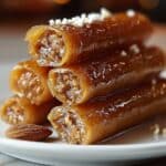 7. Dip in Honey Syrup: Immediately upon removing from the oven, while still warm, gently dip each cigar into the cooled honey syrup, allowing them to soak for a few minutes to absorb the sweet and aromatic syrup fully.