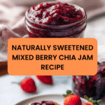 This Naturally Sweetened Mixed Berry Chia Jam is a healthy and delicious homemade spread made with frozen blueberries, strawberries, pure maple syrup, and chia seeds. It’s a perfect low-sugar alternative to store-bought jams, packed with antioxidants and fiber, and naturally thickened using chia seeds for a nutritious and flavorful treat.