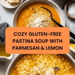 A comforting and creamy Pastina Soup made with simmered vegetables pureed into a flavorful chicken broth, brightened with a hint of lemon and served over tender gluten-free stelline pasta. Perfect as a warm, nourishing meal packed with fresh ingredients and a touch of Parmesan richness.
