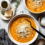 A comforting and creamy Pastina Soup made with simmered vegetables pureed into a flavorful chicken broth, brightened with a hint of lemon and served over tender gluten-free stelline pasta. Perfect as a warm, nourishing meal packed with fresh ingredients and a touch of Parmesan richness.
