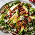 Keywords: Pomegranate salad, Christmas salad, honey mustard dressing, candied walnuts, blue cheese salad, holiday salad, festive salad recipe