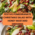 This Pomegranate Christmas Salad with Honey Mustard Dressing combines festive flavors and textures for a refreshing and elegant dish. Crisp greens, creamy avocado, sweet pomegranate seeds, and tangy blue cheese come together with candied nuts and a zesty dressing to create a perfect holiday salad.